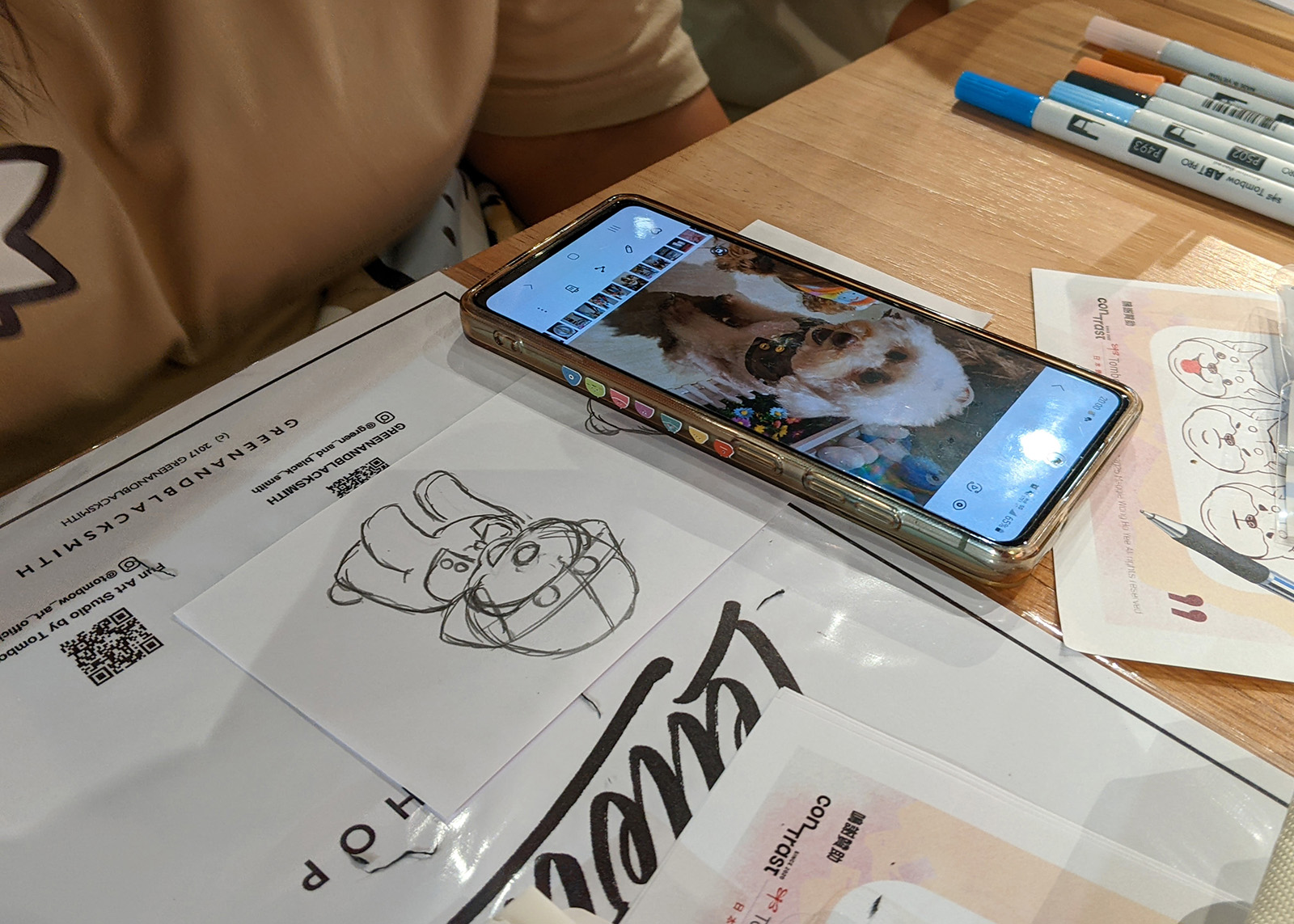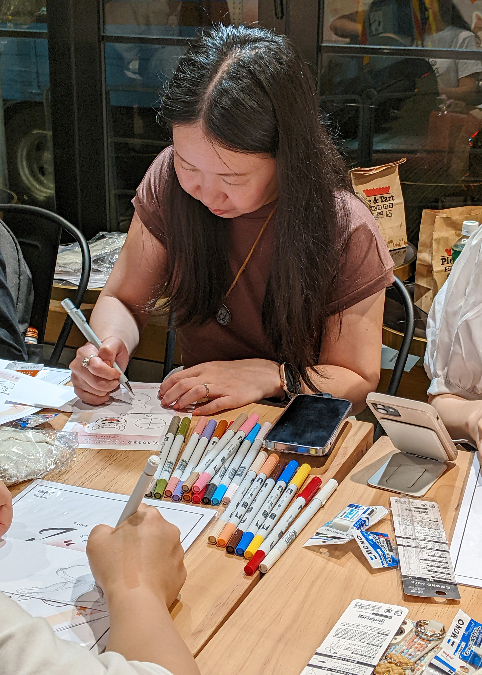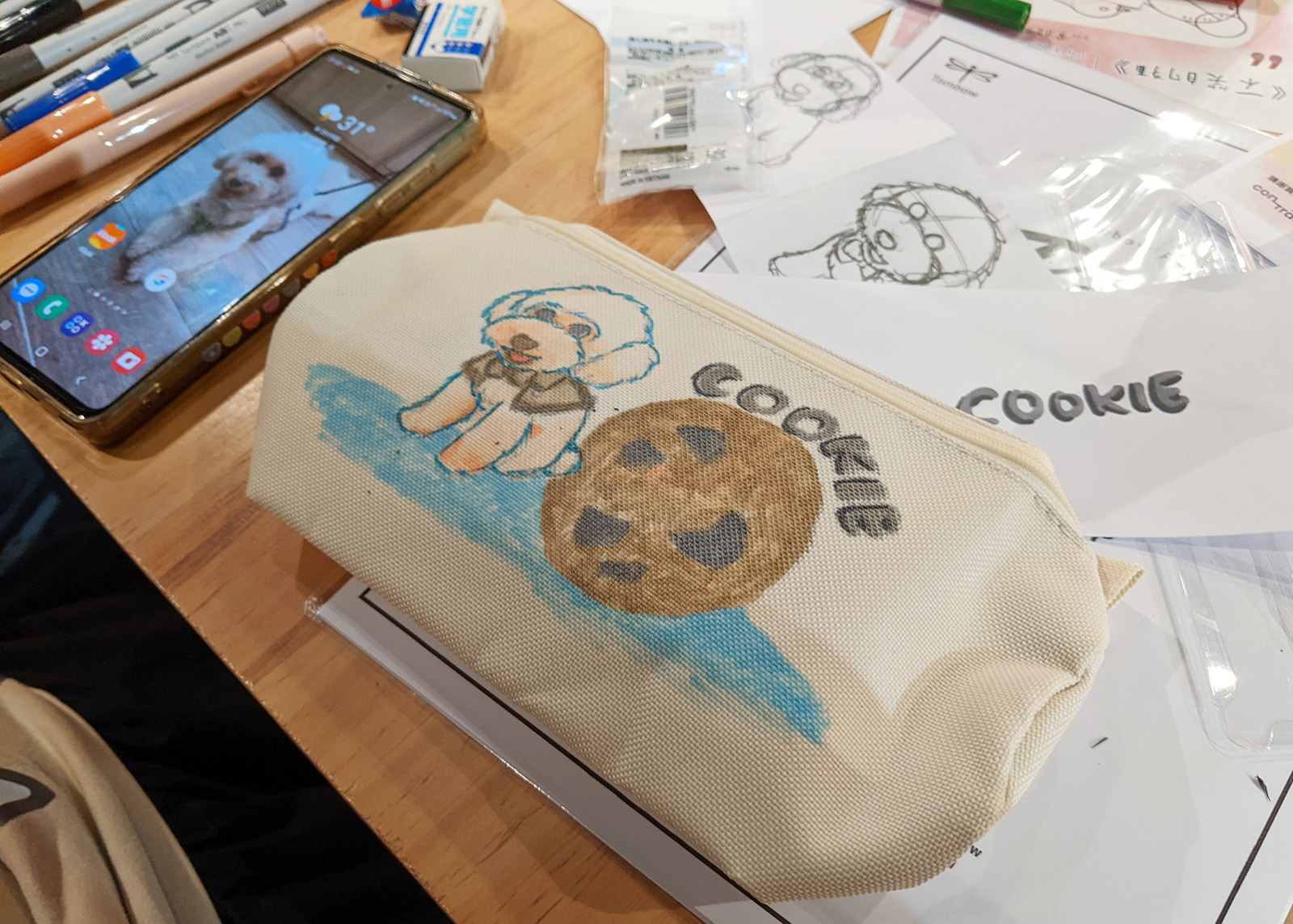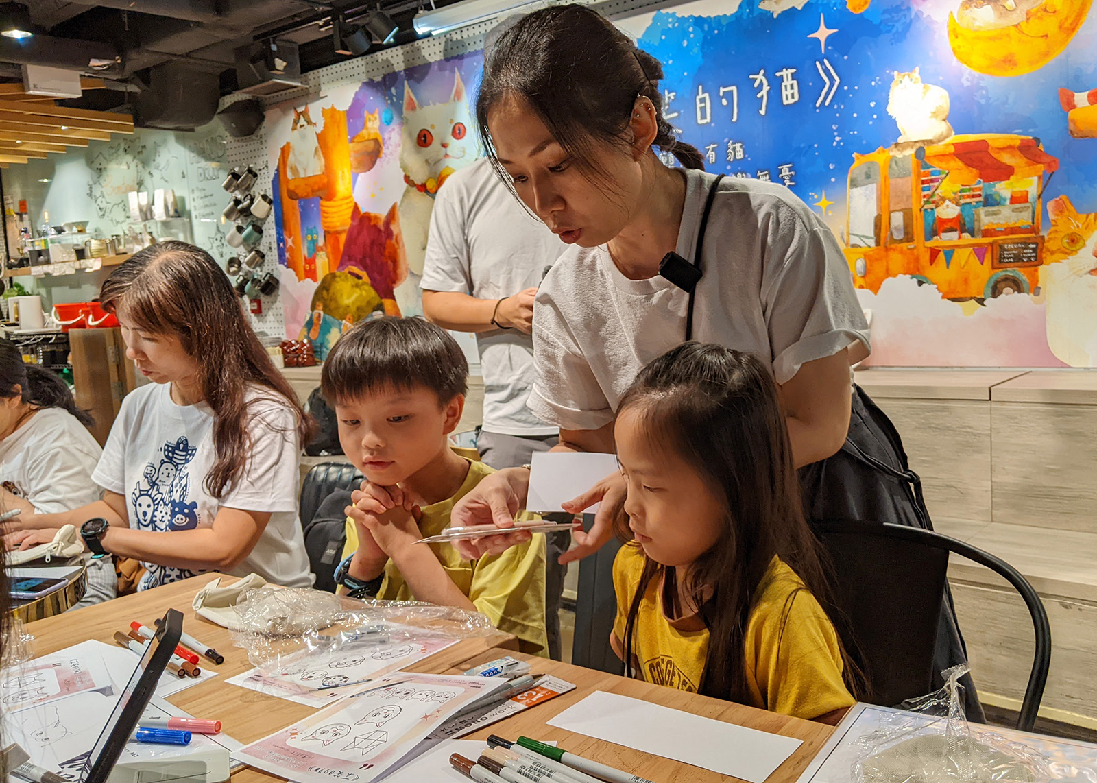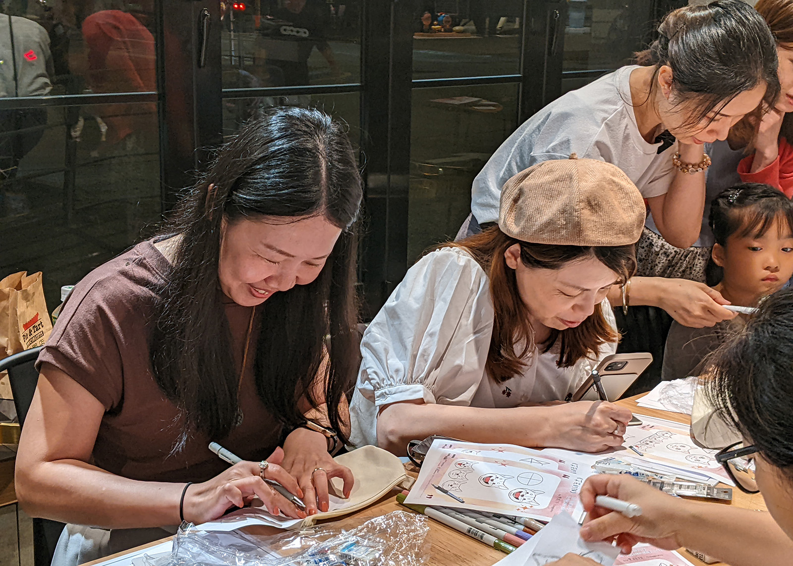 「布筆袋動物似顏繪」在貓宇宙的包圍下順利完成,《不笑的猫》繪者黃皓怡 @maggiewhoy 與參加者分享將小動物繪畫到布筆袋的心得,由運用 MONO Work 1.3MM鉛芯筆在紙張構思,到以鉛芯筆及ABTPro酒精毛筆直接在布筆袋繪畫的過程都詳細講解及示範。參加者無論大人小朋友、情侣或親子,都非常享受在貓懷抱下的溫暖氣氛創作,歡天喜地把親手繪製的動物似顏繪筆袋帶回家!